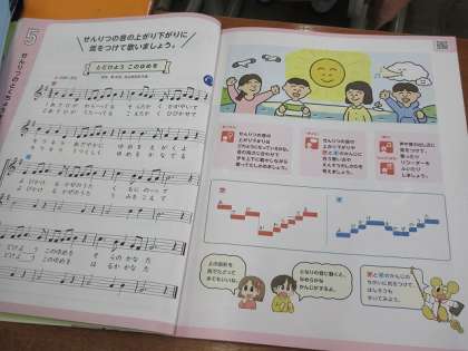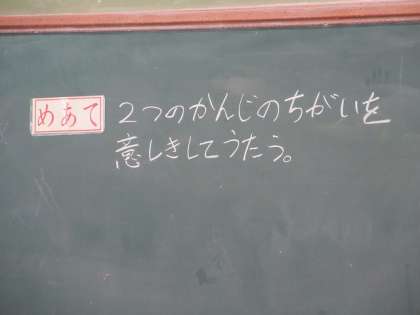 音楽のめあては、「2つのかんじのちがいを意識してうたう」です。2つの旋律をよく聞いて、違いが分かったかな?