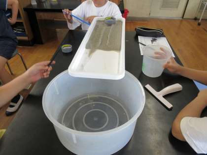 理科では「流れる水のはたらき」を理科室で学習していました。