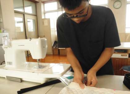 家庭科でミシンに挑戦しています。6年生は、トートバッグづくりにも挑戦中です。