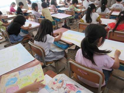 お話の絵を描いていました。きれいな仕上がりが楽しみです。
