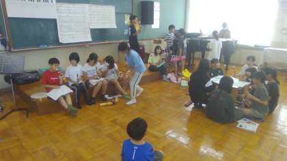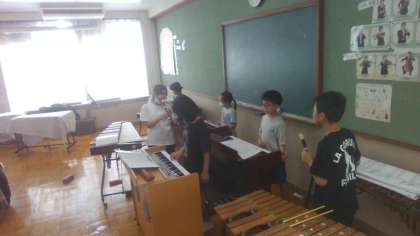 スマイルコンサートに向けて、音楽室で合奏の練習をがんばっています。
