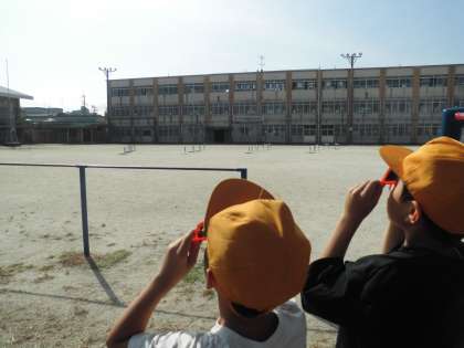 午前と午後のかげの動きを観察して、かげが動いていることを知ってびっくりしたり、遮光版で太陽を観察したりと、毎回興味をもって学習に取り組めています。