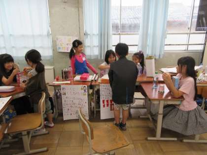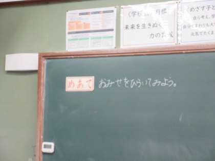 今日のめあては、「おみせやさんをひたいてみよう」でした。それぞれのお店をひらいて、楽しく学習していました。