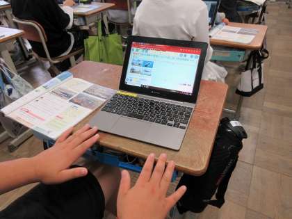 教科書の資料を基に気づいたことをタブレットに入力していました。そして、学習問題をみんなで考えました。