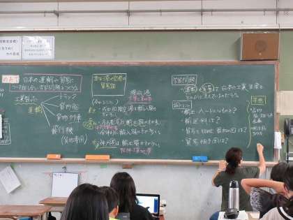 今日のめあては、「日本の運輸や貿易について話し合い学習問題をつくろう。」でした。