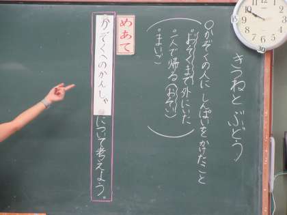 はじめに、家族の人に心配をかけたことを聞かれ、「遅くまで外にいたこと、一人で帰ったり、帰るのが遅くなった、まいごになった」などが出ていました。