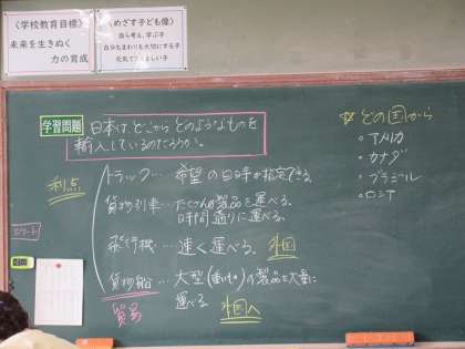 社会「工業生産を支える運輸と貿易」、学習問題「日本は、どこからどのようなものを