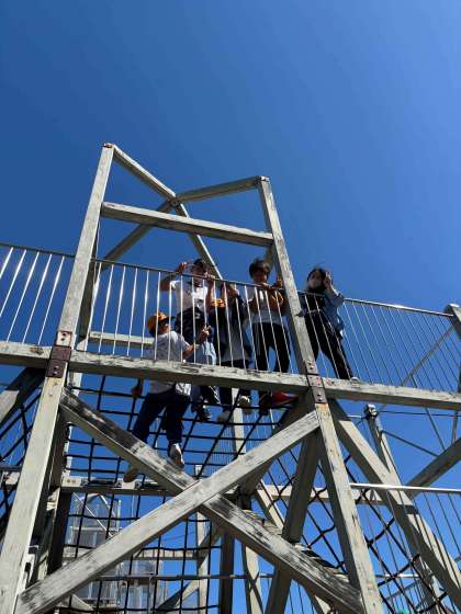 あすたむランド徳島のアスレチックで遊んでいます!よく晴れた秋空のもと、いろいろなアスレチックに挑戦しています。