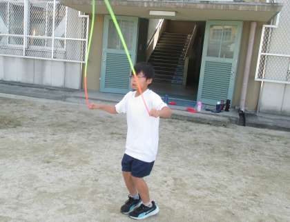 本当に、秋晴れの1日になり、運動場での体育がとても気持ちよくできました。縄跳びで二重跳びにチャレンジしたり、走り跳びで一周したり、京都タワーが見えるポイントまでを往復したりと、体をいっぱい使って運動することができました。