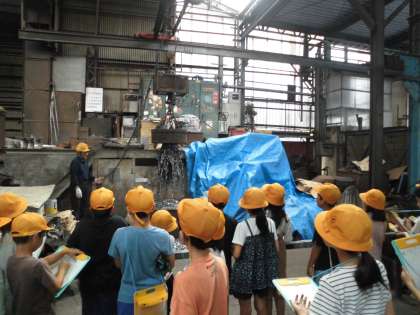 3年生では社会科の学習として、唐橋地域にあるマンホール工場へ社会見学に行きました。工場で働く方からのお話を聞きながらマンホールの秘密に迫りました。