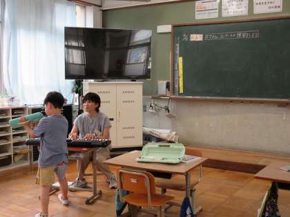 「スマイルコンサートの練習をしよう」をめあてに、鍵盤ハーモニカを上手に先生のリズムに合わせて演奏できていました。