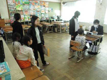 来春から入学してくる新1年生のための就学時健康診断で、5年生がお手伝いをしました。
