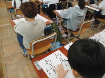 字の中心に気を付けて、書きました。ペンを使って字を書きました。よい姿勢で、集中してがんばっていました。