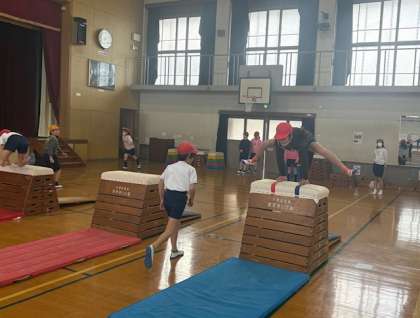 体育科では、とび箱運動の学習が始まりました。両足でピタッと着地することや、目線などを意識しながらいろいろな技に挑戦しています。