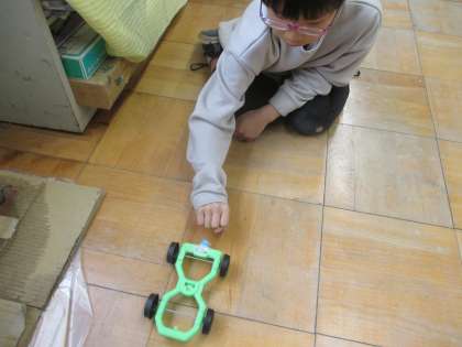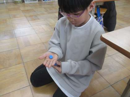 理科の学習で磁石の力について学んでいます。金属につく力は知っていたけれど、逆に反発させたり、反発の力を使って車に触れずに、動かしたりを楽しみました。また、紙を通して金属を動かせることは知っていたけれど、手のひらも通して磁石の力が働くことも驚きでした。