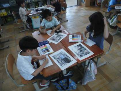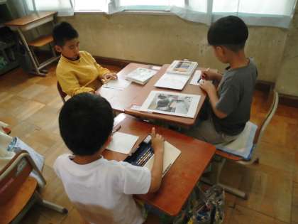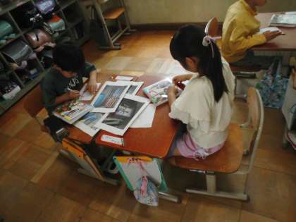 「わたし○○かくわ。」「ぼく○○かくわ。」と話し合いながらかいています。