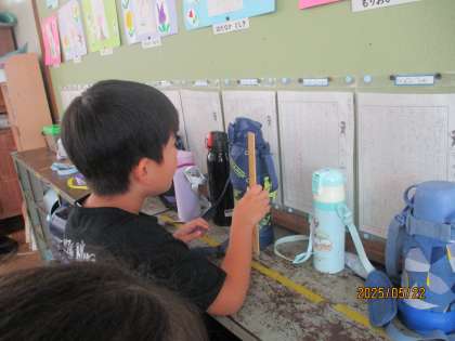 2年生では、ものさしを使って、長さを測ったり、直線を書いたりする学習をしています。