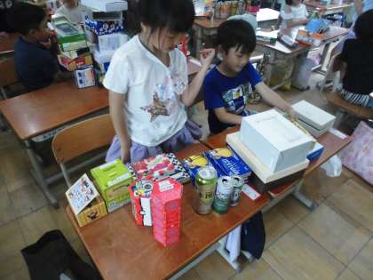 もってきたはこのにているところをみつけて、仲間分けをしました。