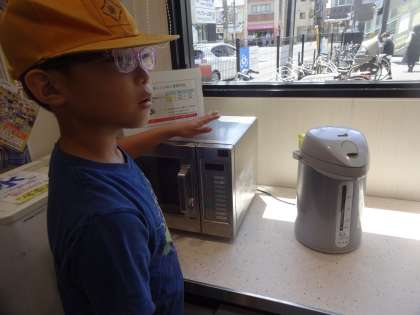 社会の学習でスーパーにはどんな品物が並んでいるのかな、働いている人はどんな仕事をしているのかなを見つけに出かけました。「魚を焼いたのが運ばれてきたよ。」「どこで作っているのかな。」「電子レンジは何のために置いてあるのかな。」と調べたいことがたくさん見つかりました。