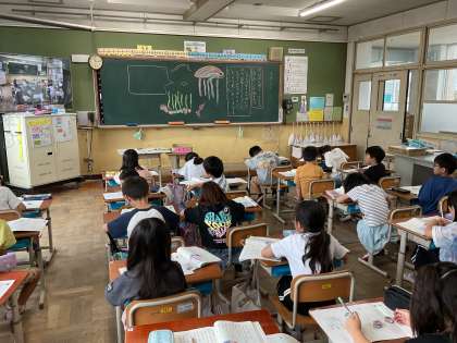 2年生では、スイミーの学習を行なっています。本日の授業では、マグロに襲われて兄弟たちと離ればなれになったスイミーが、さまざまな海の生き物と出会って、元気になっていく場面を学習しました。