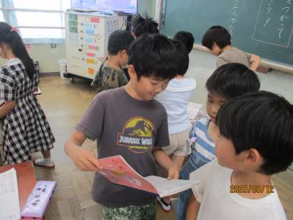 文章が出来上がり、友達と見せ合いっこして楽しんでいました。