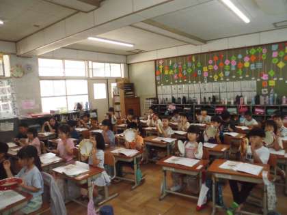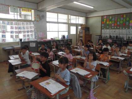 カスタネットやタンブリンをつかって、リズムあそびをしました。