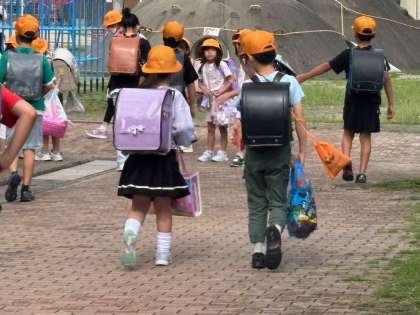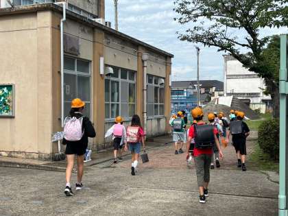 月曜日になりました。1週間の始まりです。今日はお天気もよく、子どもたちは登校してきて正門前で元気にあいさつをしてくれます。いつも通りの登校風景ですが、児童の手には・・・プールバックを持っています。そうです!今日から1・2年生の“水なれ(定水位のプール)”がはじまるのです。