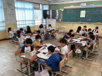 今週末に町探検でどんなことを発見してきたか、どんなことを聞いてきたかを、クラスでポスターを用いて発表します。発表会に向けて、ポスターの準備を行いました。各チーム、「こんなの見つけたよね!」「そういえば、あんなことを言っていたよね!」「みんなはどんなことに興味があるだろう?」と、ポスターにどんなことを書くか相談しながら作成していました。