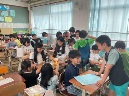 夏休みに取り組んだ自由課題の作品を交流しました。工夫したことや頑張ったことを伝えながら、楽しく交流することができました。