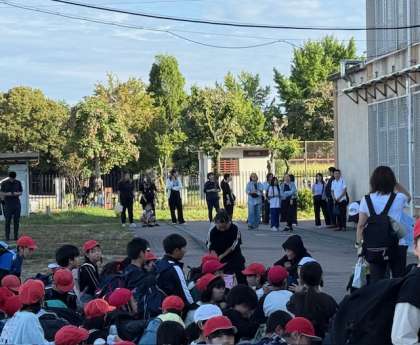 多くの保護者・教職員に見送られ、学校を出発しました。保護者の皆様、持ち物やお弁当などのご準備ありがとうございました。