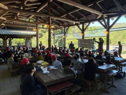 クラフトの活動を終え、第一炊飯場に移動してきました。はじめに学年の先生や山の家の先生から説明を聞きます。10時00分、いよいよ野外炊事開始です!
