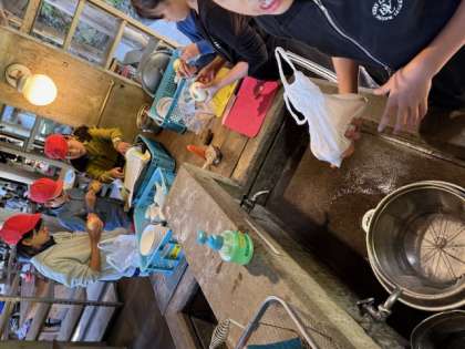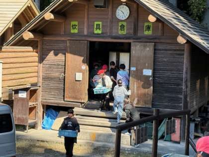 各班、野菜・薪・米の担当に分かれて、準備していきます。