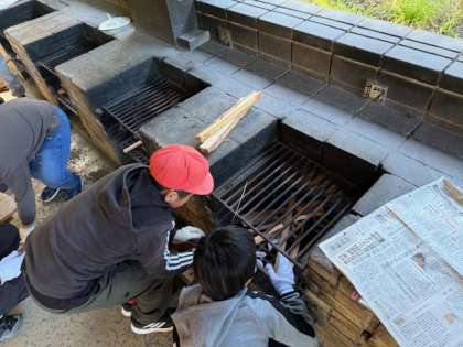 野菜を切ったり、お米をといだり、薪を組んだり…みんなで協力しています。