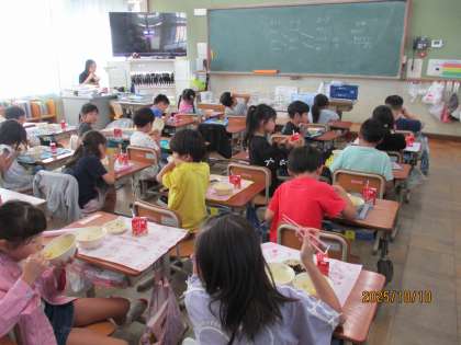 ふっくらだし卵は、卵にだしの味がよくしみ込んでいました。「卵がおいしい!」「この給食また出してほしい!」と、子どもたちにも好評でした。