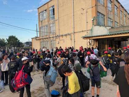 帰校後、運動場で「解散式」を行いました。多くの保護者・教職員が、5年生児童を出迎えてくれました。お迎えに来ていただきました保護者の皆様、ありがとうございました。