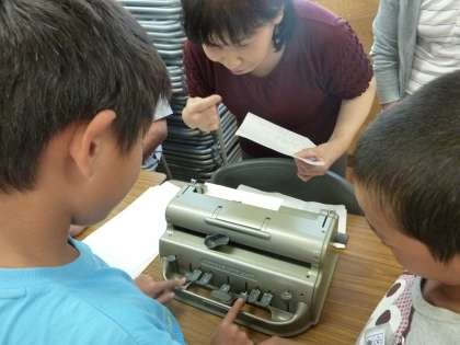 写真は,「点字用タイプライター」です。