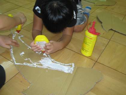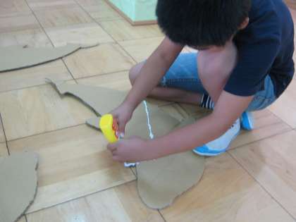 今年の南なかよしフェスタは,唐橋小学校が会場です。各学年の皆さんも,招待状を書いたり,一緒にダンスを踊ったりと,なかよしフェスタを盛り上げてくれます。4組では,個人種目「ドルフィンジャンプ」で使うイルカの箱を作りました。段ボールを組み立てたり,イルカの形に段ボールを切り抜いたりと,はりきって活動してくれました。10月16日の本番で,このイルカが使われるのが楽しみです。