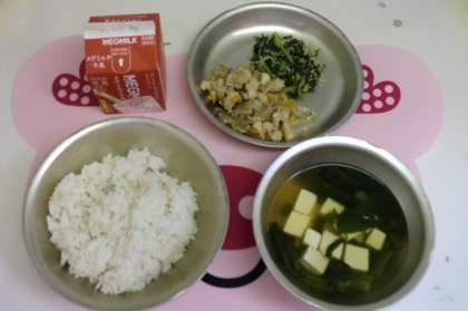 とりめしは新献立でした。鶏肉と人参,牛蒡,干ししいたけで作った具を,教室で各自のごはんに混ぜて食べました。「おいしいよ!」とたくさんの子が声をかけてくれました。
