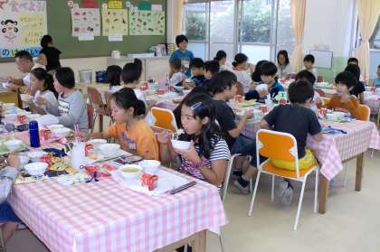 今日は5年1組がランチルームでした。ごはんと一緒に回鍋肉もしっかり食べていました。