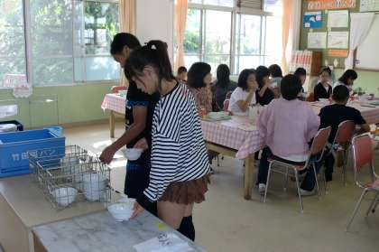 6年1組がランチルームでした。さすがは6年生。準備も片付けも素早く丁寧に行うことができました。給食も完食でした。