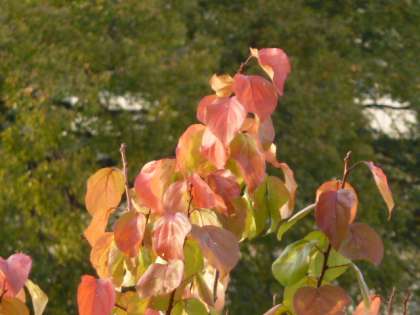 昨日の新聞に紅葉に関する記事が出ていました。それによると,京都市はヒートアイランド現象のためか,府内でもっとも遅く色づくようです。校庭のスモモは,今きれいに色づき始めています。