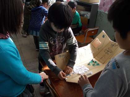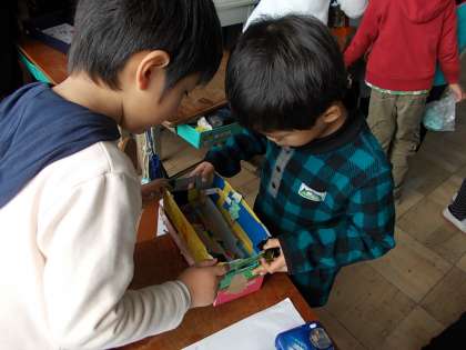どんぐりのやじろべえや,くじびき,魚つり・・・たくさんのおもちゃを前に,あっというまの1時間でした。2年生のみなさんの「1年生のために」という気持ちが,ひしひしと伝わってきました。「また行きたいです。」「また2年生といっしょに遊びたいです。」「あんなやさしい2年生になりたいです。」教室ではたくさんの感想が出ました。