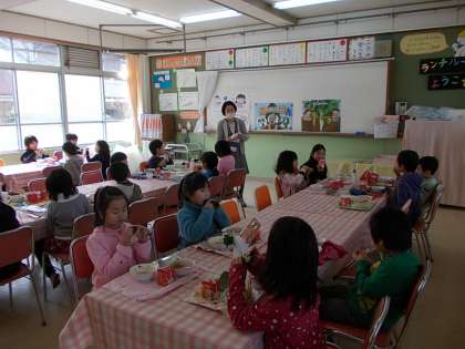 先週,1組と2組はランチルームでの給食がありました。今回は野菜がどのようにして育つのか,そして,それぞれの栄養素について教えてもらいました。「ぼく,ほんまは○○が苦手やねん。でもがんばって食べてんねん。」というつぶやきがあちこちから聞こえていました。これからも,バランスのよい食事で風邪にも負けない強い体を作っていってほしいと思います。