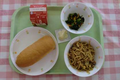 今日は6年2組がランチルームでした。今日の献立は,「小型コッペパン,牛乳,ソース焼きそば,小松菜のごま油いため,チーズ」でした。少し残っていたおかずもたくさんの子がおかわりをしてくれました。今日も完食です。