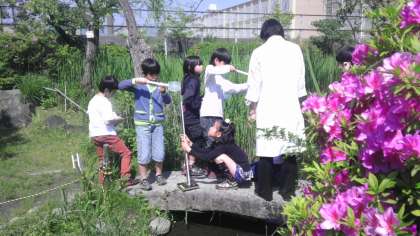前半は各クラスに分かれ,1組は「木」,2組は「水」,3組は「エコ」について観察や実験を通して学習しました。後半はプラネタリウムで月や星について学習しました。