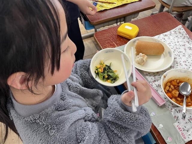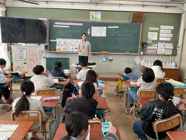 栄養教諭の富樫先生に、「正しいお箸の持ち方」の授業をしていただきました。