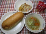 今日の献立は、「ミルクコッペパン・牛乳・ペンネの豆乳グラタン・野菜のスープ煮」でした。