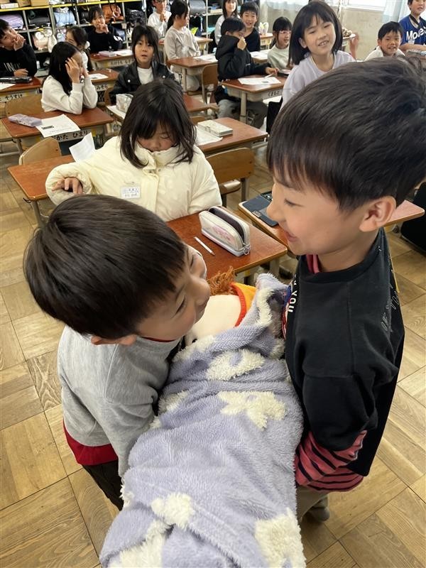 渡す人にアドバイスしながらみんなで抱っこしました。