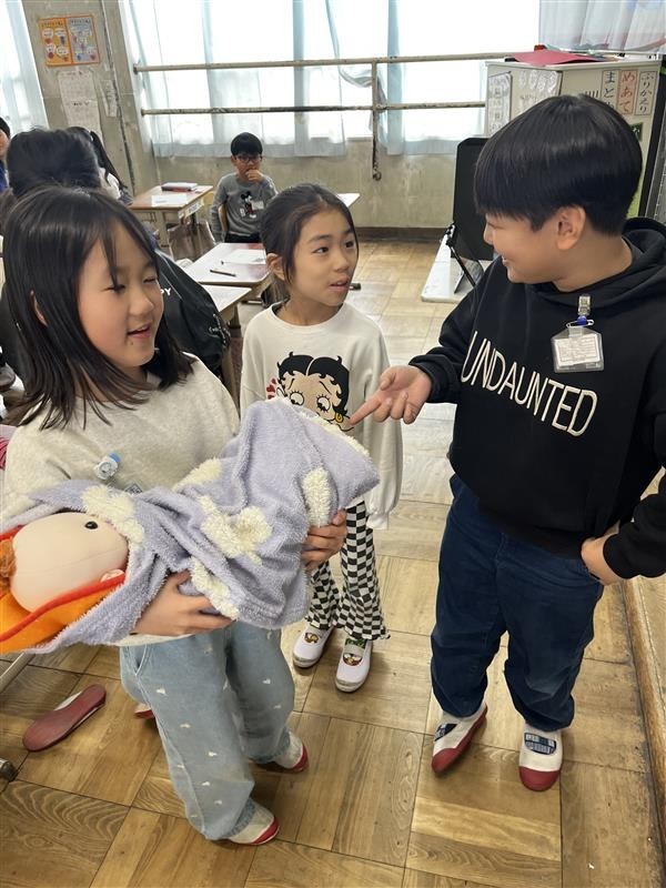 今日は、実際に赤ちゃんの重さの人形も順番に抱っこしました。