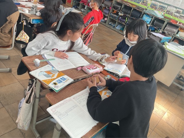 算数科では「直方体と立方体」の学習が始まりました。面や頂点の数を調べたり、展開図を書いたりして学習を進めています!